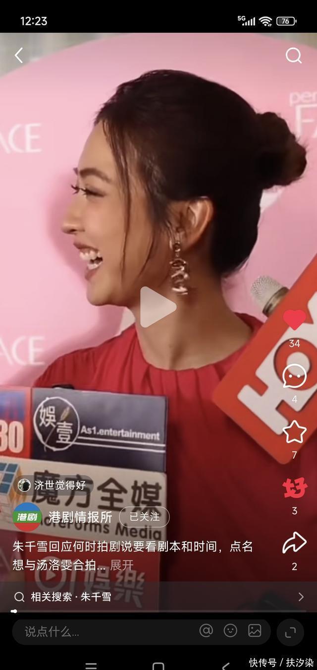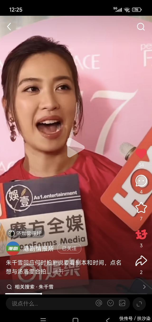 当有记者问到朱千雪何时能够出来拍剧时,朱千雪直言,其实自己也很想拍剧,但是现在拍剧的话要看时间和剧本,而如果说到自己最想要拍的剧集类型,朱千雪直言,其实自己很想拍喜剧,因为自己从出道以来很少接触喜剧题材,但其实自己在私下还是一个非常搞笑和有活力的人,至于说到合作对象,朱千雪毫不犹豫的说到好姐妹汤洛雯,因为对方也好久没有拍剧了,所以自己非常想和对方合作,毕竟也是好姐妹。